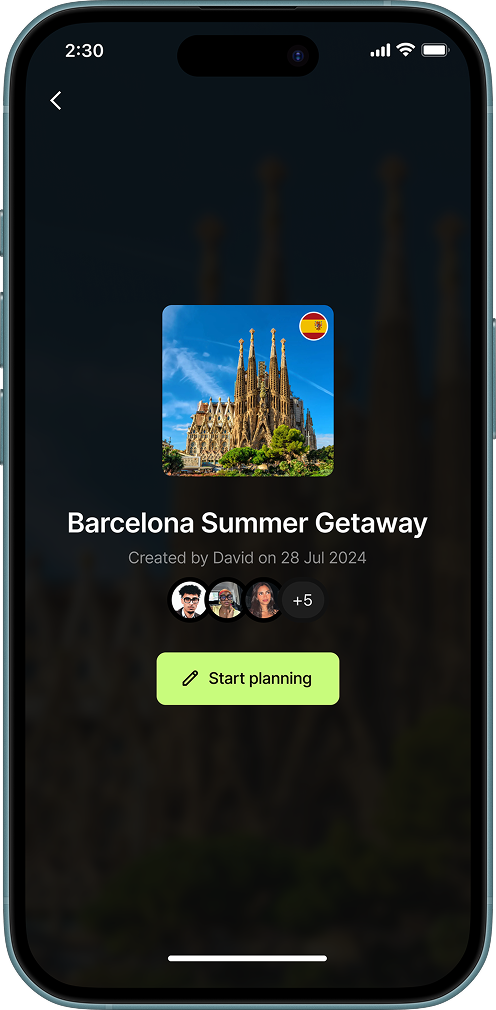 Drag and drop activities, accommodations, and sights to design a personalized itinerary everyone can contribute to.